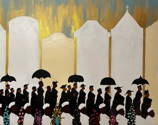My work is rooted in storytelling. I paint what I know, what I have lived, and what I have witnessed within my family, my community, and my faith. When All God’s Children Get Together is an extension of that practice. It is a visual gathering of souls, memories, and shared experiences that reflect both who we are and who we continue to become.